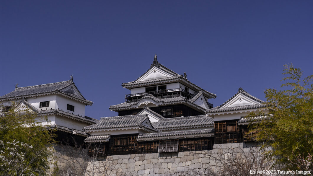 江戸時代には全国に170ヶ所はあったとされる城郭も、今日では「弘前城」、「松本城」、「丸岡城」、「犬山城」、「彦根城」、「姫路城」、「松江城」、「備中松山城」、「丸亀城」、「松山城」、「宇和島城」、「高知城」(「日本100名城」による順)という現存12天守のみとなっている。中に備中松山城とあるが当地の場合は「松山城」として「伊予」は付けない。注目すべきは四国には現存12天守の内4天守、さらに愛媛県には「宇和島城」とともに2天守が残っていると言うことでお城マニアにとっては刺激的だ。