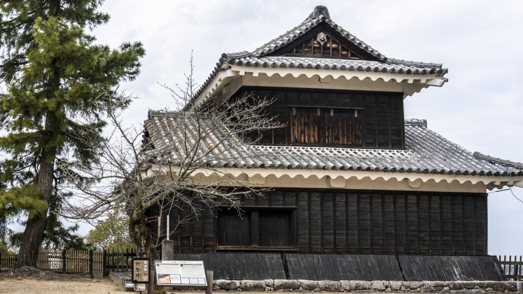 日本で唯一現存する望楼型二重櫓で建物の上に物見(望楼)を載せた古い形式で天守の原型とされる。