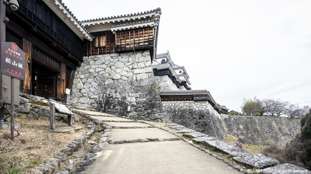 ただ、松山城のホームページによるとそろそろ満開ということなので是非お出かけいただきたい。インバウンドのお客様で混雑しているが、それは本壇の天守を目指す方々のこと。今回私が訪ねた搦手エリアは、歴史的背景でも興味深いことが多くて面白い。写真を撮ってもなかなか楽しいし、なんと言っても紫竹門を潜ってからは人が少ないからゆっくりできる。