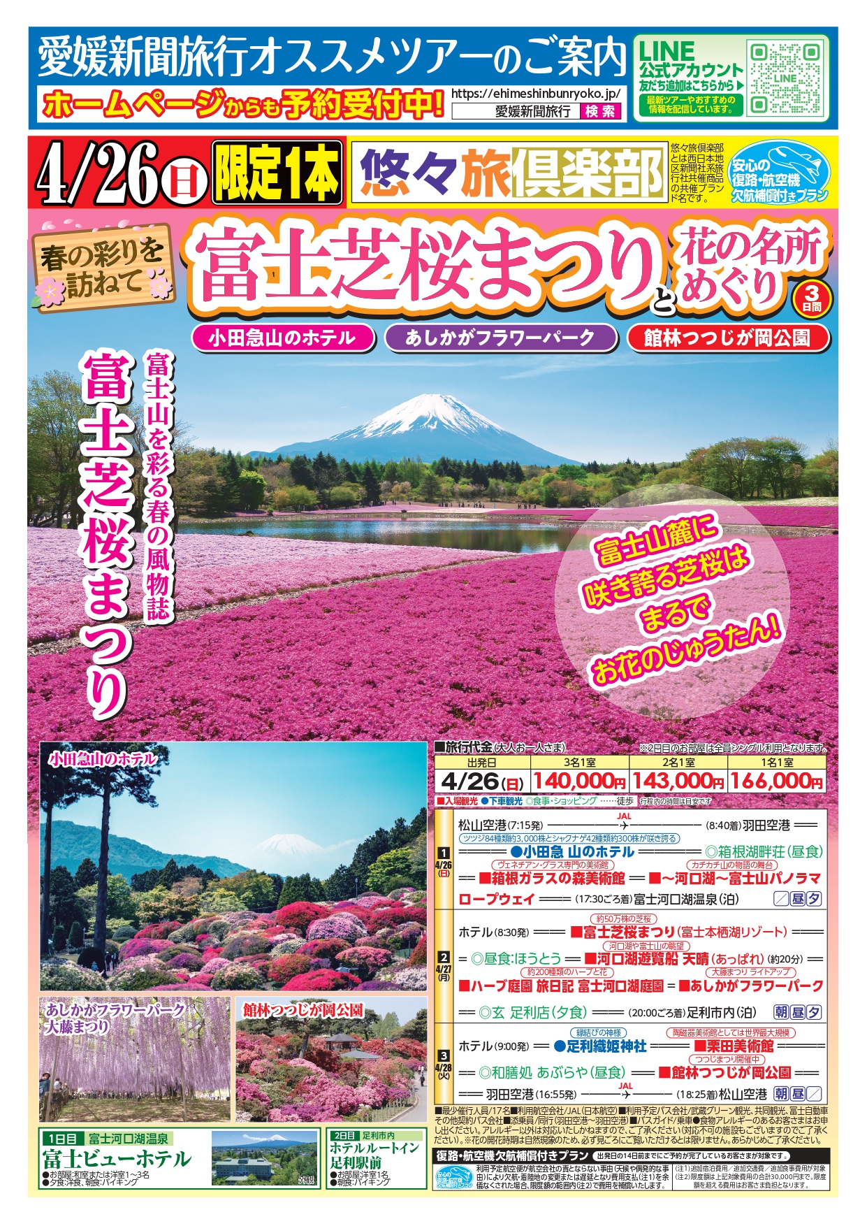 | 2026年4月26日(日) | お一人様140,000円~166,000円 | 募集中 |