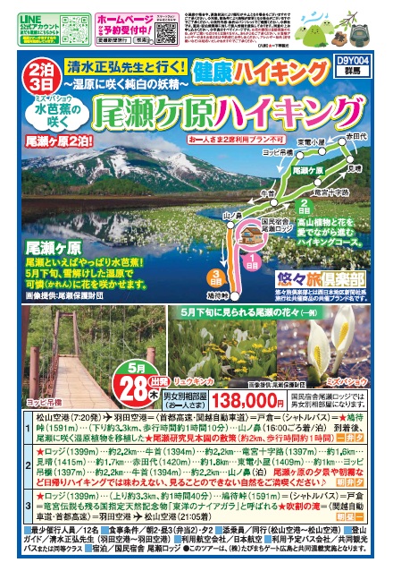 清水先生と行く!【健康ハイキング】ミズバショウの咲く尾瀬ヶ原ハイキング3日間