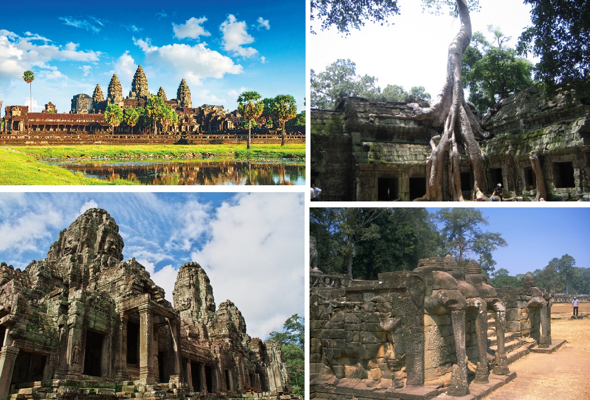 左上段:アンコールワット 左下段:アンコール・トム 右上段:タ・ブローム 右下段:象のテラス イメージ