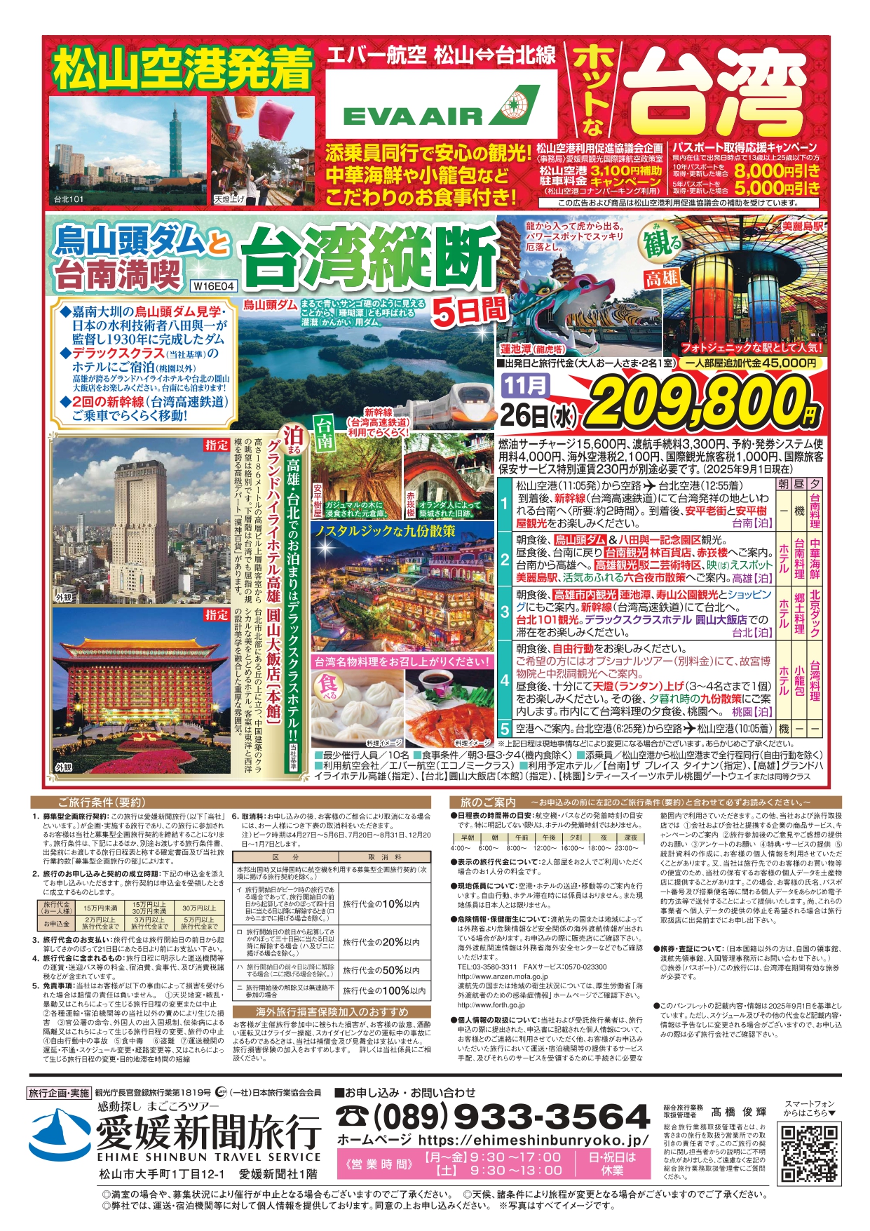 ホーム > 海外ツアー > 松山空港発着 台湾